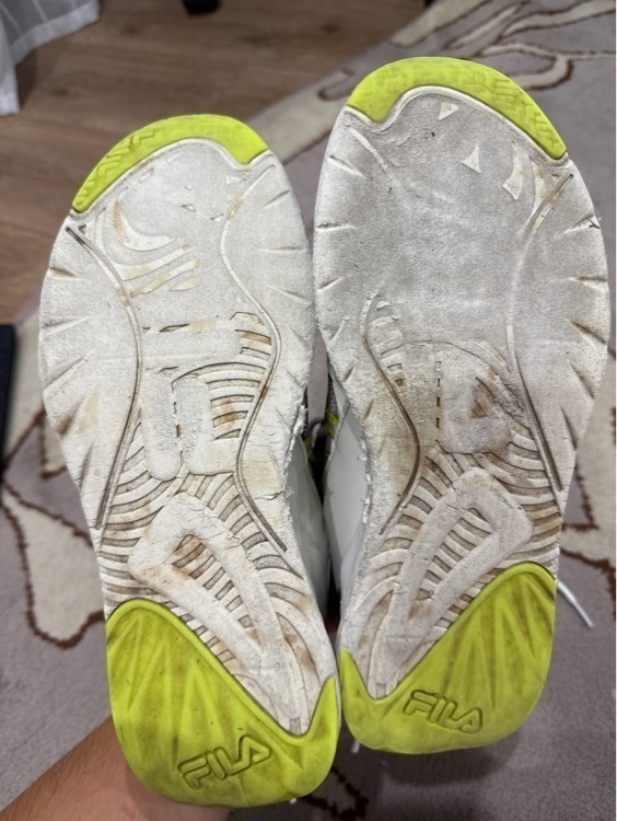 Сын носит уже 6 месяцев. Сбились носки. А так состояние еще приличное. Не расклеились. Подошва у толчковой ноги при катании на самокате сшоркалась гораздо сильнее. Зеленые стопоры шнурков на пятке сползают со временем, периодически надо подтягивать.
