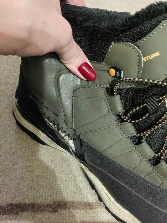 На первый взгляд понравились. Верхняя часть ботинка прорезиненная, как раз на снегокашу. Внутри теплые, удобная шнуровка. Показалось, что немного все таки большемерят.