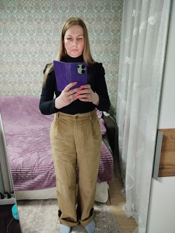 Теперь это любимые брюки, хочу ещё в светлом цвете заказать, мягкие. комфортные, на работу ходить самое то.