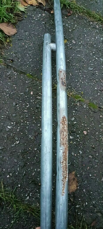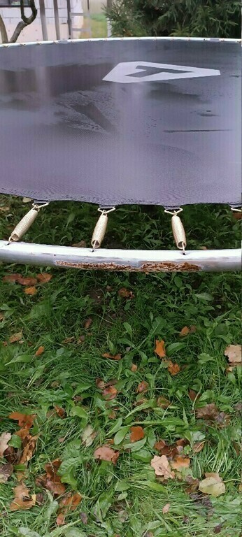 Срок пользования 3 месяца. В целом батут неплохой. Устойчивый. Впечатление испортили оторвавшиеся завязки и выступившая ржавчина. За три месяца - оцинковка так себе. На фото труба от маленького батута, 7 лет, и труба от этого.
