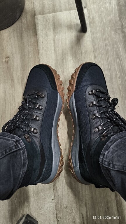 Но! После 1,5 месяцев аккуратной носки образовалась дырка на сгибе правого ботинка, соответственно, туда попадает влага и прочая соль. 😑 После первого одевания слезли буквы на стельке, ерунда вроде, но неприятно.