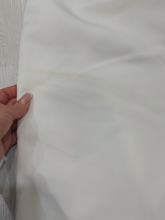 Купила куртку и белые брюки Volkl, и после первой носки куртка покрасила белые брюки😭. Теперь брюки в коричневую полоску.На фото почти не видно, но вид у брюк испорчен.