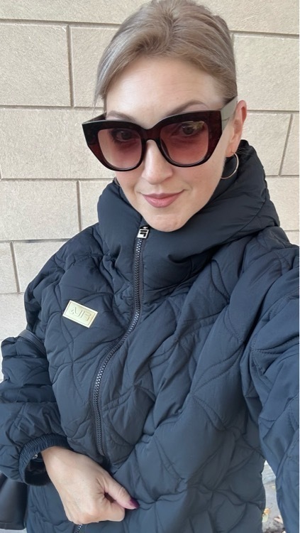Куртка классная, красивая, оверсайз, стёганая, закрывает ягодицы,прикольные рукава фонариком,на межсезонье, в 0 градусов в ней уже холодно, единственно воротник толстый, тяжёлый ,плотный, душит и шея потеет, примерила и не захотелось снимать,сразу купила, цвет бежевый, ближе к розовому очень освежает, курткой очень довольна.