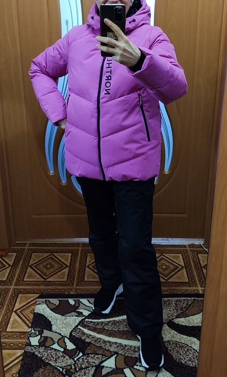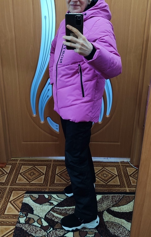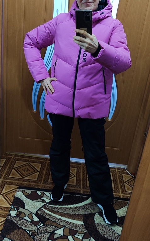 Ах, какая куртка-пуховик! Сразу понравилась. Яркая, красивая, тёплая, мягкая, удобная. На улице все обращают внимание. Среди белого, безликого, зимнего пейзажа она, как экзотический. яркий цветочек. Глаз радует!
