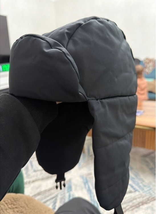 Теплая, закрываются ушки, на затылке есть резинка, чтобы под затянуть.