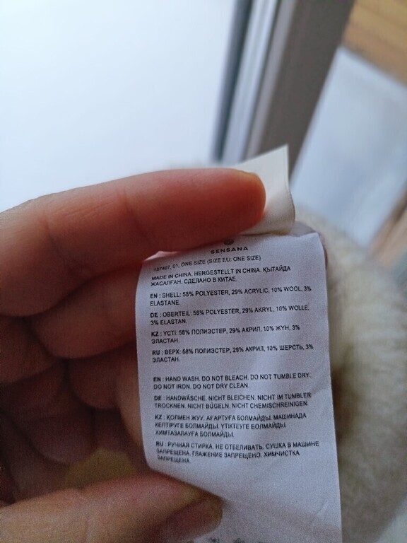58% полиэстер, 29% акрил, 10% шерсть, 3% эластан