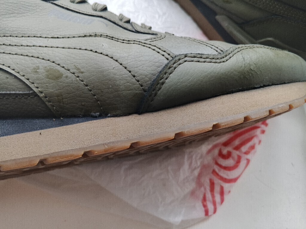 Были куплены в начале декабря. Носка с января два-три раза в неделю и как и у многих отслоился носок и пошли трещины по кожзаму. Это, конечно, не та самая Puma, а франшиза, возможно, исключительно для магазина, так как модель вы эту больше нигде не увидите. Но проблема не во франшизе, а в том какая фабрика и материалы для неё были выбраны. А тут, очевидно, сэкономили. Лучше б на фабрике другого бренда делали…