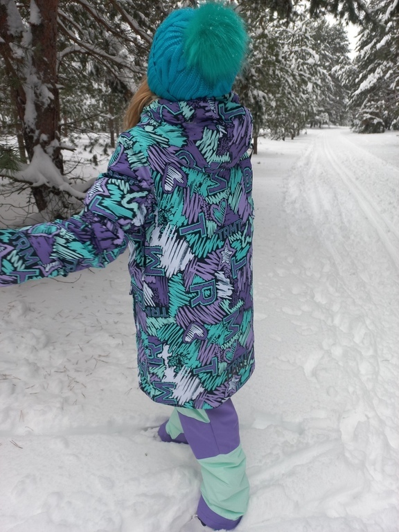 Синтепон отлично удерживает тепло. Можно не переживать, что ваша начинающая спортсменка замерзнет на подъемнике или когда захочет отдохнуть. Подходит для температуры от -5 до -15 °С. Если ребенок не планирует заниматься спортом, то модель можно носить до 0 °С. Напоминаем, что на восприятие температуры влияют индивидуальные особенности организма и погода. - ВОДОНЕПРОНИЦАЕМАЯ МЕМБРАНА
