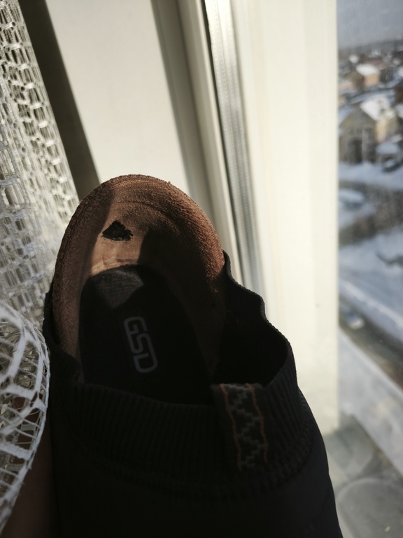 Пожалуй это родные тонкие стельки как в летних кроссовках, считаю упущение существенное. Сразу заметил на тонкие меховые. Ну и нога несколько в них свободна потому как задних держит пятку слабовато. Теоретически прибеге может слететь, ну не факт.