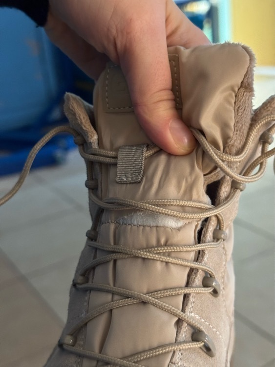 В целом покупкой довольна. Однако пришлось немного "доработать".) Во-первых, обязательно пропитать водо- грязе- оталкивающим средством, тогда и такая светлая обувь не пачкается и не промокает. Во-вторых, пришлось заменить стельки на зимние тёплые. А то в минус 10 чувствовался холод в подносочной части. Ну и шнурки заменила на эластичные.)