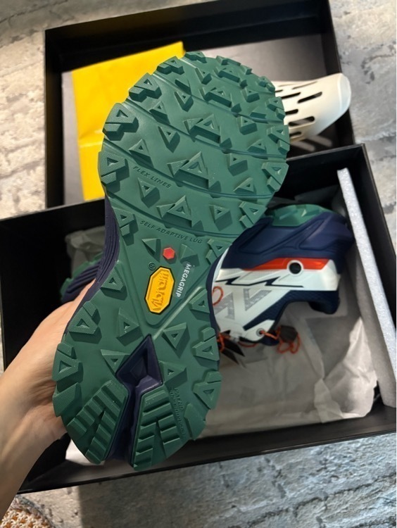 Мягкая, пружинящая подошва, при этом цепкая в условиях земляных троп, в городе немного цепляется и из-за этого запинаешься.