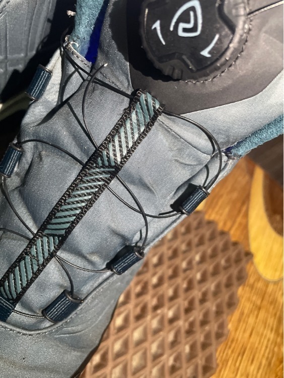 Закидывает грязь и воду на носок, от этого быстрее промокают, а спустя месяц лопнула проволока на ровном месте (обувь в размер, без резкого приседания, прыжка и т.д., просто стоя на месте лопнула и все), ужасное впечатление.