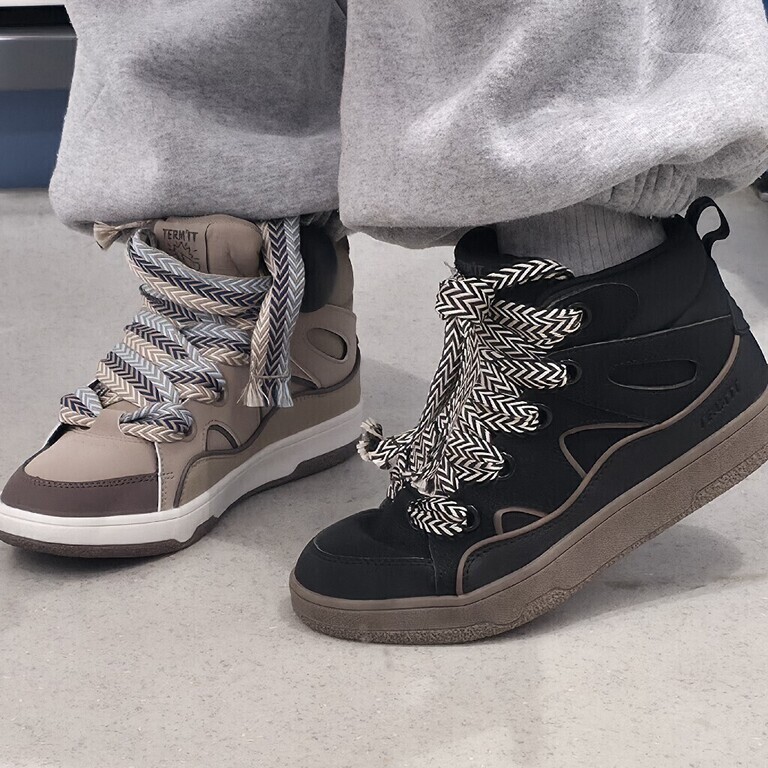 Хорошие кроссовки, достаточно высокие. Подходят для прохладной погоды. Шнурки широкие и без эглетов, неудобно перешнуровывать.
