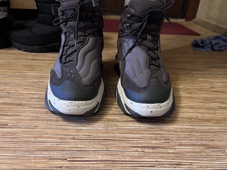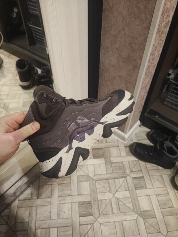 Брал на зиму, исходя из соображений удобства, ну и конечно, чтобы нога не мерзла. Хожу уже второй месяц и могу выделить плюсы: очень удобные кроссовки, подошва большая и крепкая, в них тепло, даже при минус 20 кончики пальцев остаются в тепле. Необычный вид и цена. Качество вполне приемлемое, все держится, ничего не торчит. Про минусы ниже.