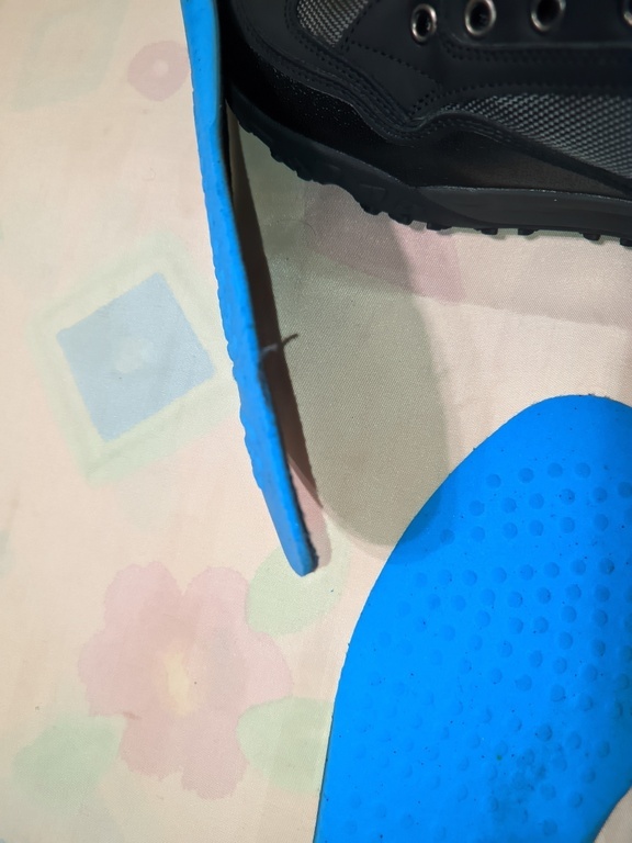 Сразу обращаю внимание короткие шнурки, на верхние отверстия их не хватает. Из-за жесткого верха снимать и надевать кроссовки без специальной ложки практически невозможно. Стельки тонкие. Главный косяк верх подошвы, сразу под стелькой, сделан из белого материала, похожего на пластик, влагу он не впитывает. Примерно через час нахождения на улице там скапливается влага, стельки и носки становятся мокрыми и ступня начинает мерзнуть. К покупке для длительного использования данные кроссовки не рекомендую.