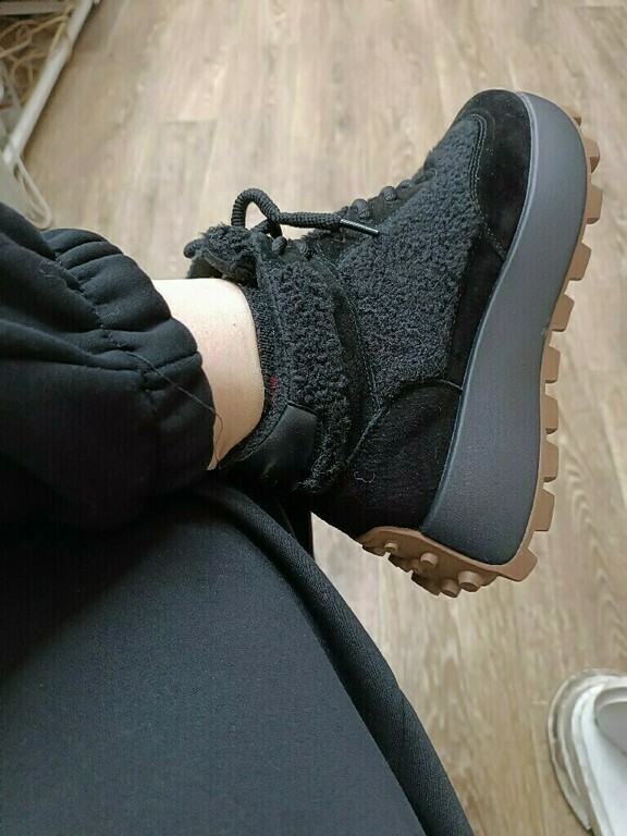 Отличные стильные боты. И с джинсами, и со спортивным костюмом. Высота подошвы нравится. Лекало отличное. Стилевое решение интересное со вставками из барашка.
