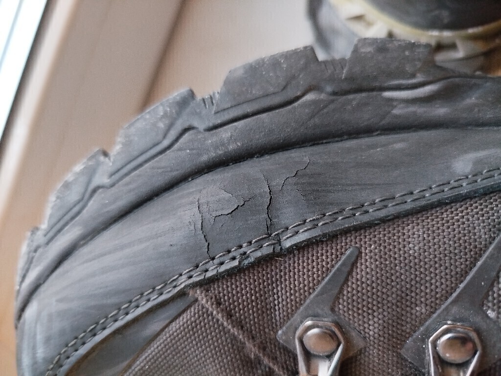 Начали умирать уже через 4 месяца, правый ботинок потрескался, я в шоке, если честно, есть ещё две пары подобных ботинок, купленных у китайцев за тысячу рублей, им года 4 и все ещё живые, в отличие от этих(( Эти взял, т.к. мембрана какая-то есть, пропитка, и в целом выглядели достойно. Печаль печальная.