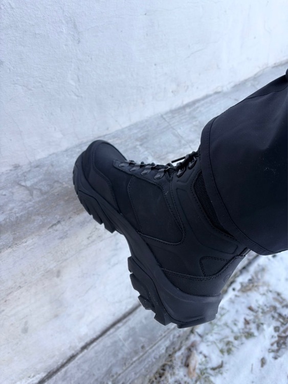 Отличные ботинки, муж привереда перемерил с десяток разных моделей, остановился на этой. На ногу 27 см взяли 41-й размер, 42-й оказался большеват. По температурному режиму выходил в -15, -24, -32 красноярский край, холода пришли в конце ноября, ноги не замерзают, есть небольшое ощущение прохлады от левой нижней клепки, но и носок обычный средней плотности можно сказать тонкий.