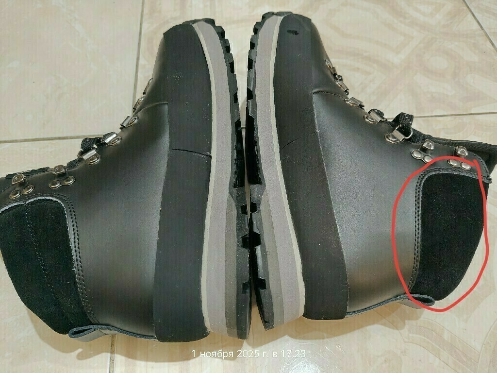 Левая и правая сторона ботинок разные в чём конкретно по шву. В фото укажу.😅Через день только заметил.