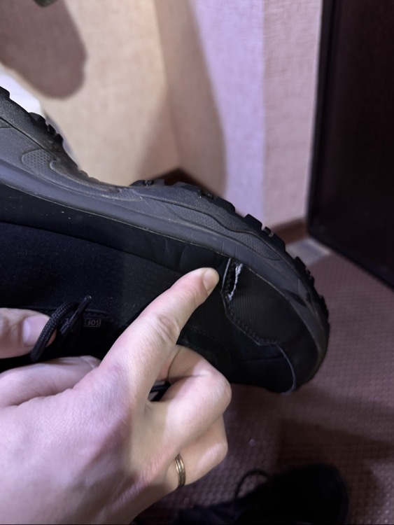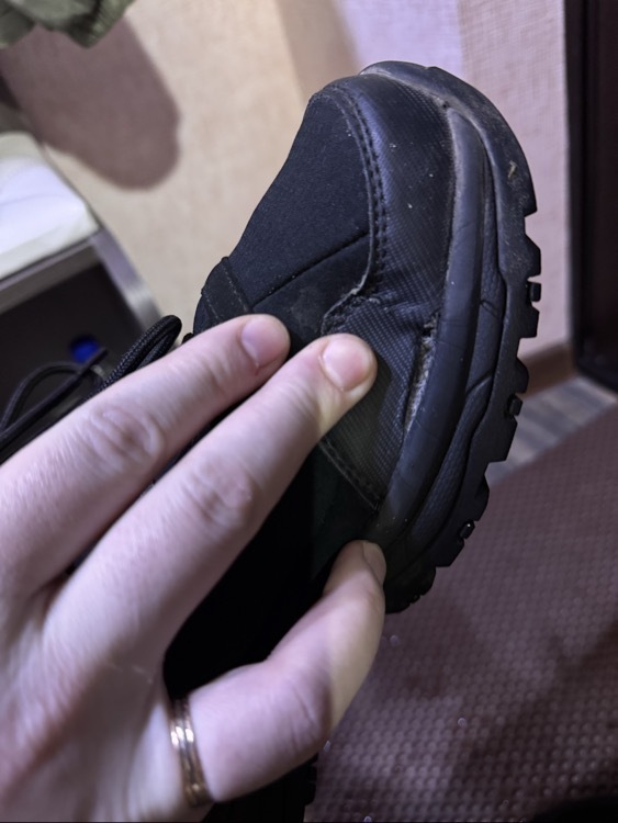 Вставка из прочного материала на мыске защитит пальцы от повреждений при случайных ударах о корни и камни.