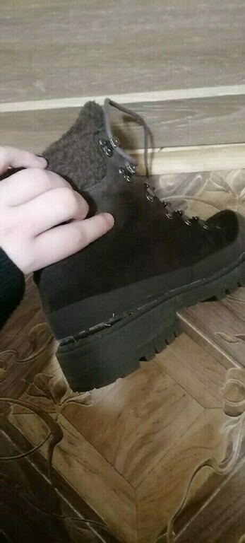 Хорошая зимняя подошва (материал, толщина, протектор). Окантовка стыка для защиты от промокания. Красивый шоколадный цвет.