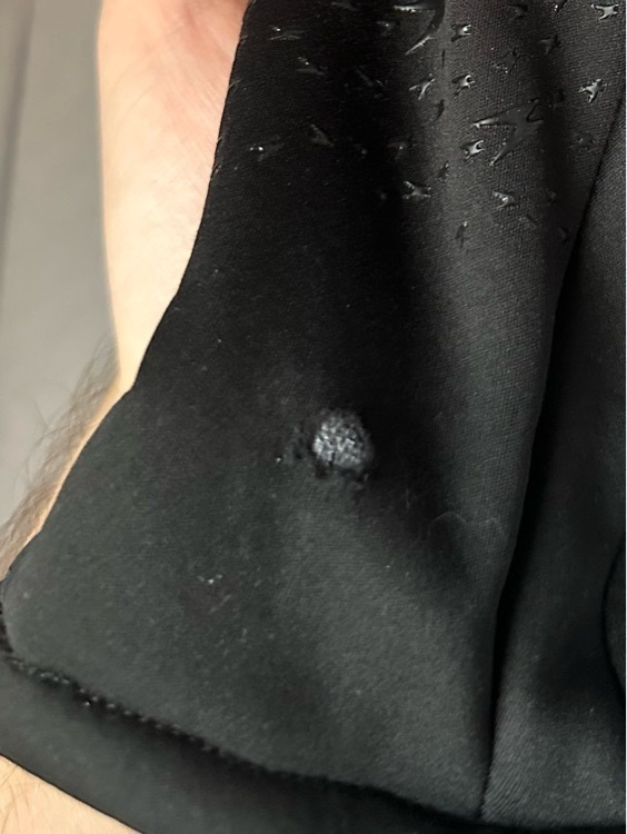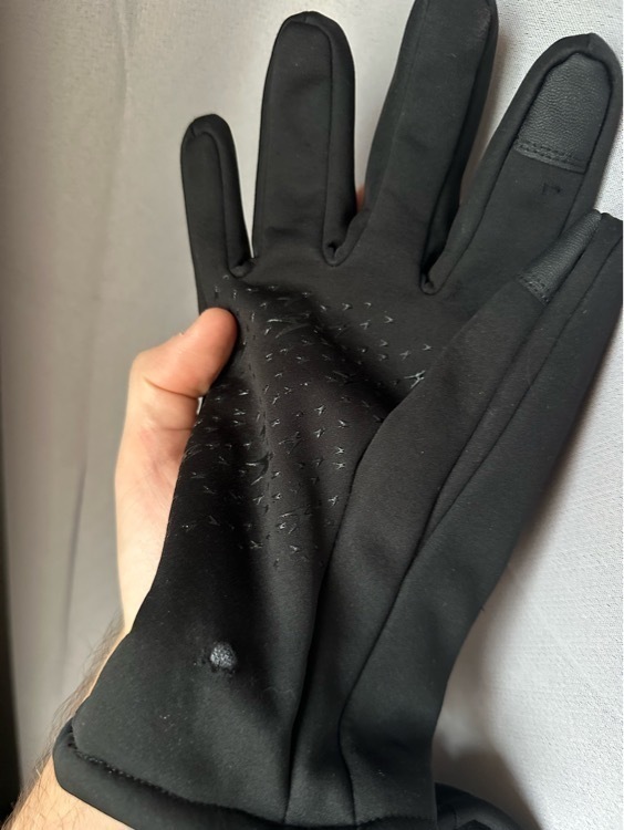 Из плюсов: визуально и тактильно приятные. Теплые при температуре -14. Но уже после первого не особо продолжительного лыжного катания они выглядят вот так. Наружный материал крайне тонкий и рвется непонятно от чего, видимо от контакта с лыжными палками. Берите, только если планируете просто носить их, без каких-либо спортивных занятий.