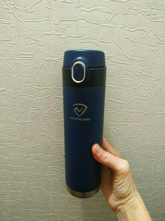 Термокружка из нержавеющей стали от Northland. Крышка открывается нажатием кнопки. Предусмотрен предохранитель от проливания. Объем 400 мл.