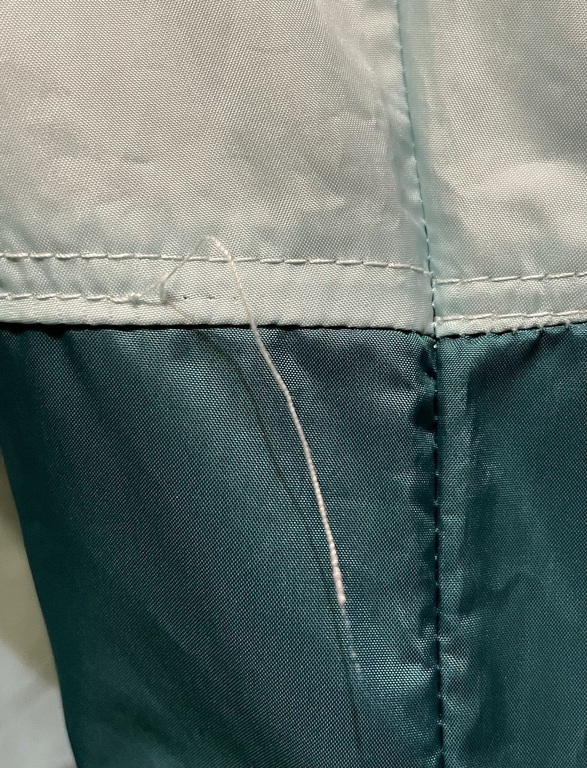 Из недостатков: внутренняя часть карманов выполнена из сетки, что не позволяет класть очень мелкие предметы в карман, например, семечки, они будут застревать. В кулиски продет не тянущийся шнурок без фиксаторов. Я заменила на шляпную резинку и применила фиксаторы. Торчат нитки и не до конца прошиты строчки (фото прилагаю).
