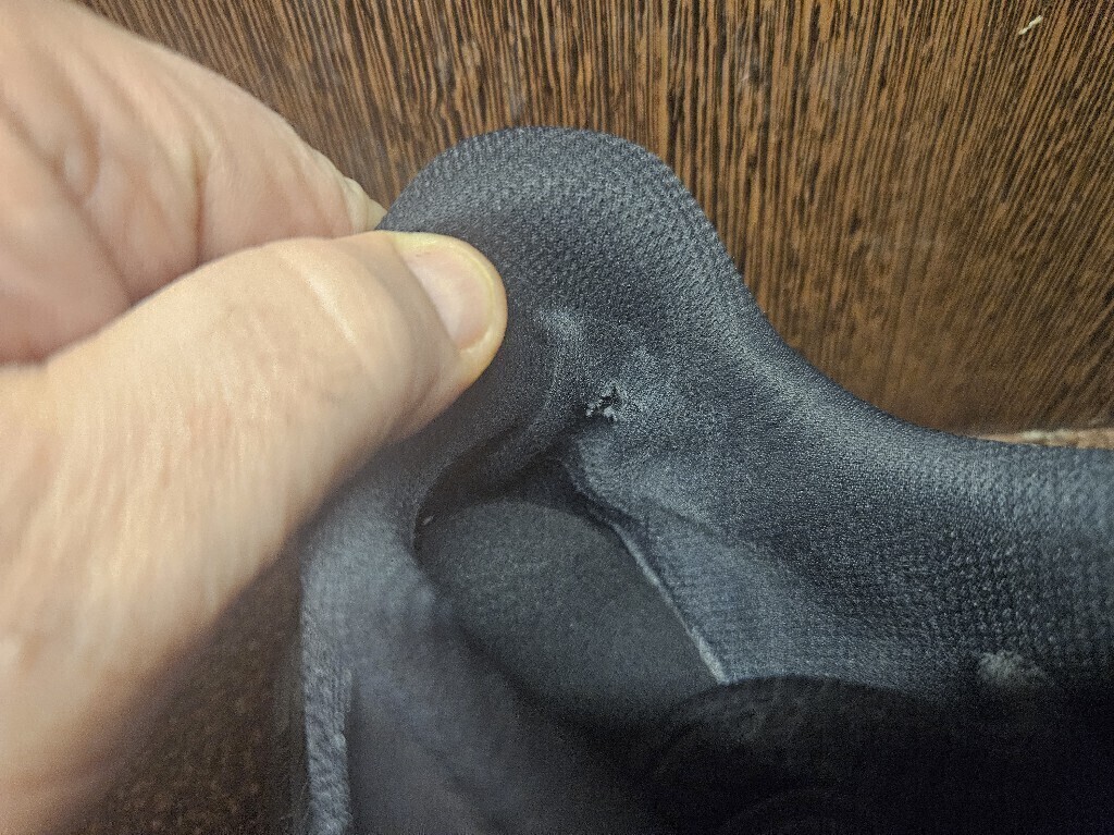 Носил чуть больше месяца назад на работе в помещении, протерлась пятка, случайно заметил.